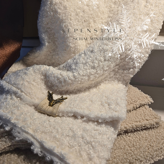 Ganz neu im A l p e n s t y l e sind trendige Hunde Loops und Schals für' s Frauli in tollem winterweiß.