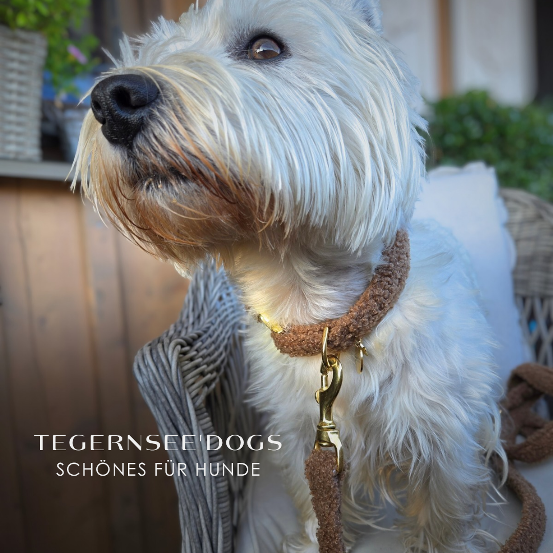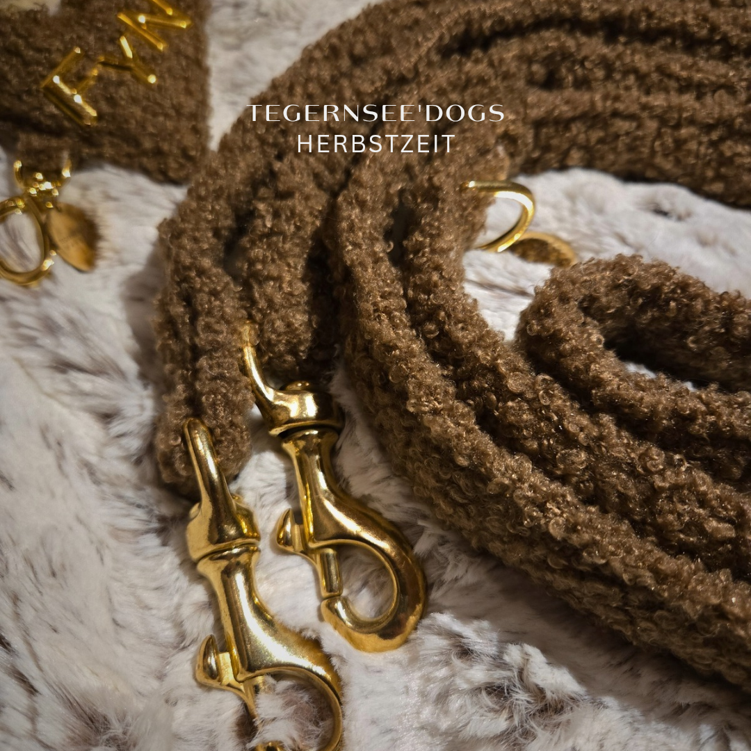 Eine Leine wie ein Handschmeichler! Robust & weich in 100% Handarbeit gefertigt. Passend natürlich zum Halsband Bouclé Mocca ein modisches Set für Herbst & Winter.
